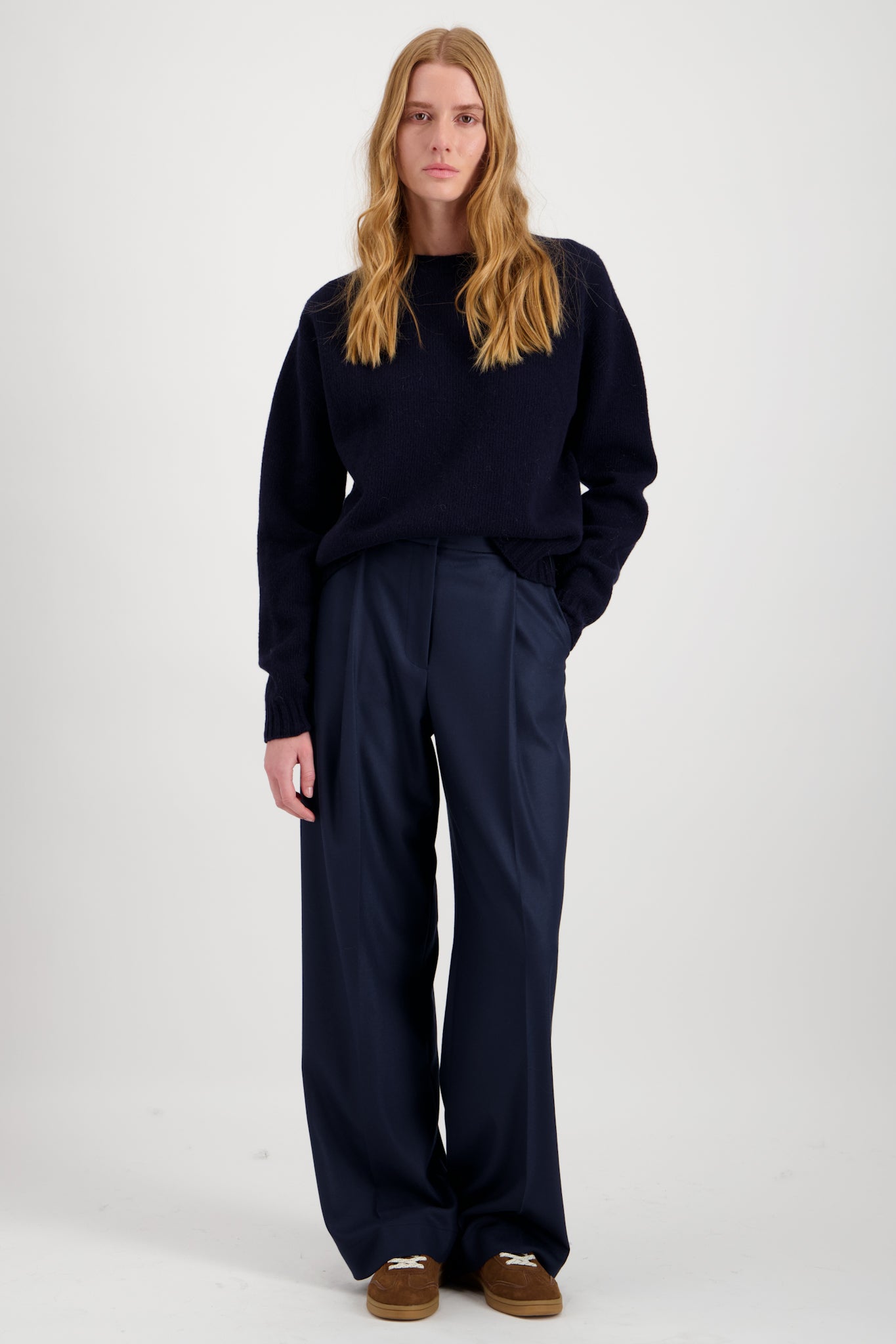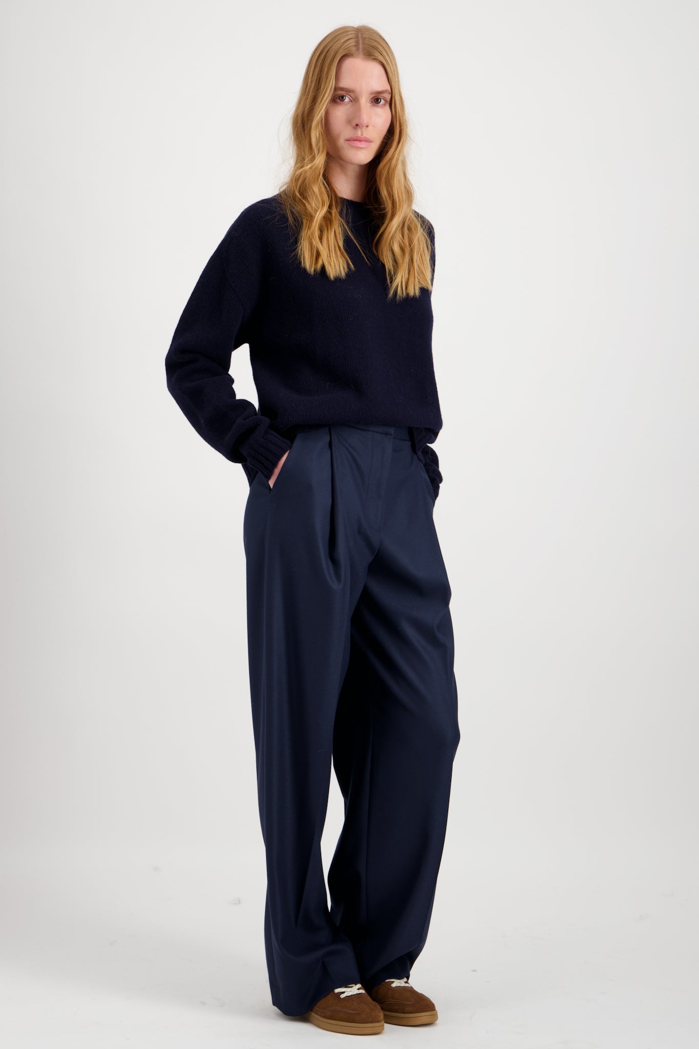 Pantalon de tailleur taille normale en laine avec un plis unique