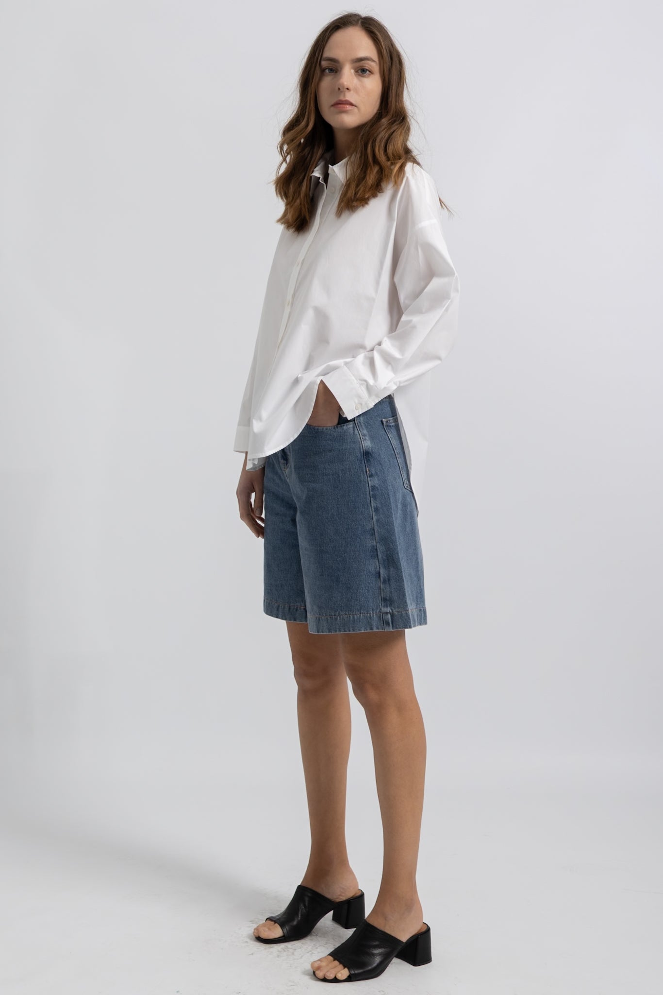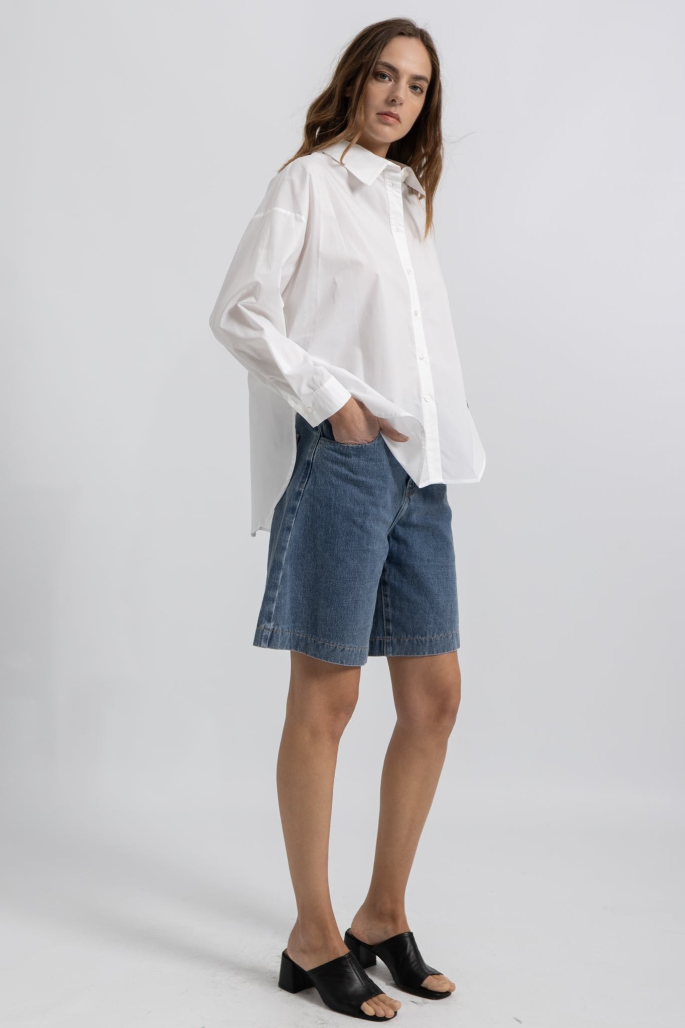 - Chemise décontractée en popeline de coton à fentes
