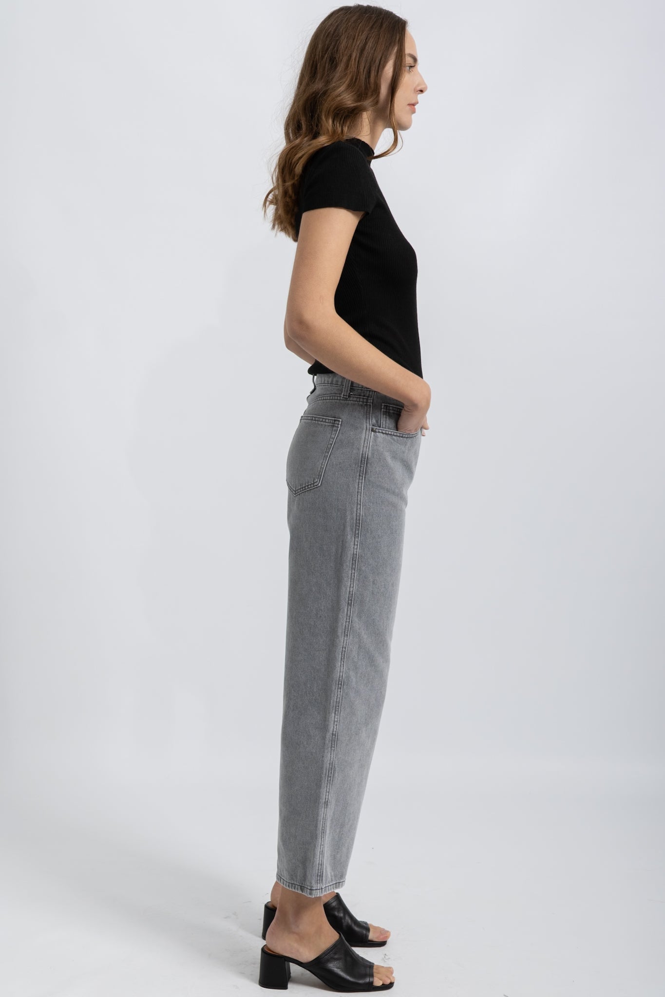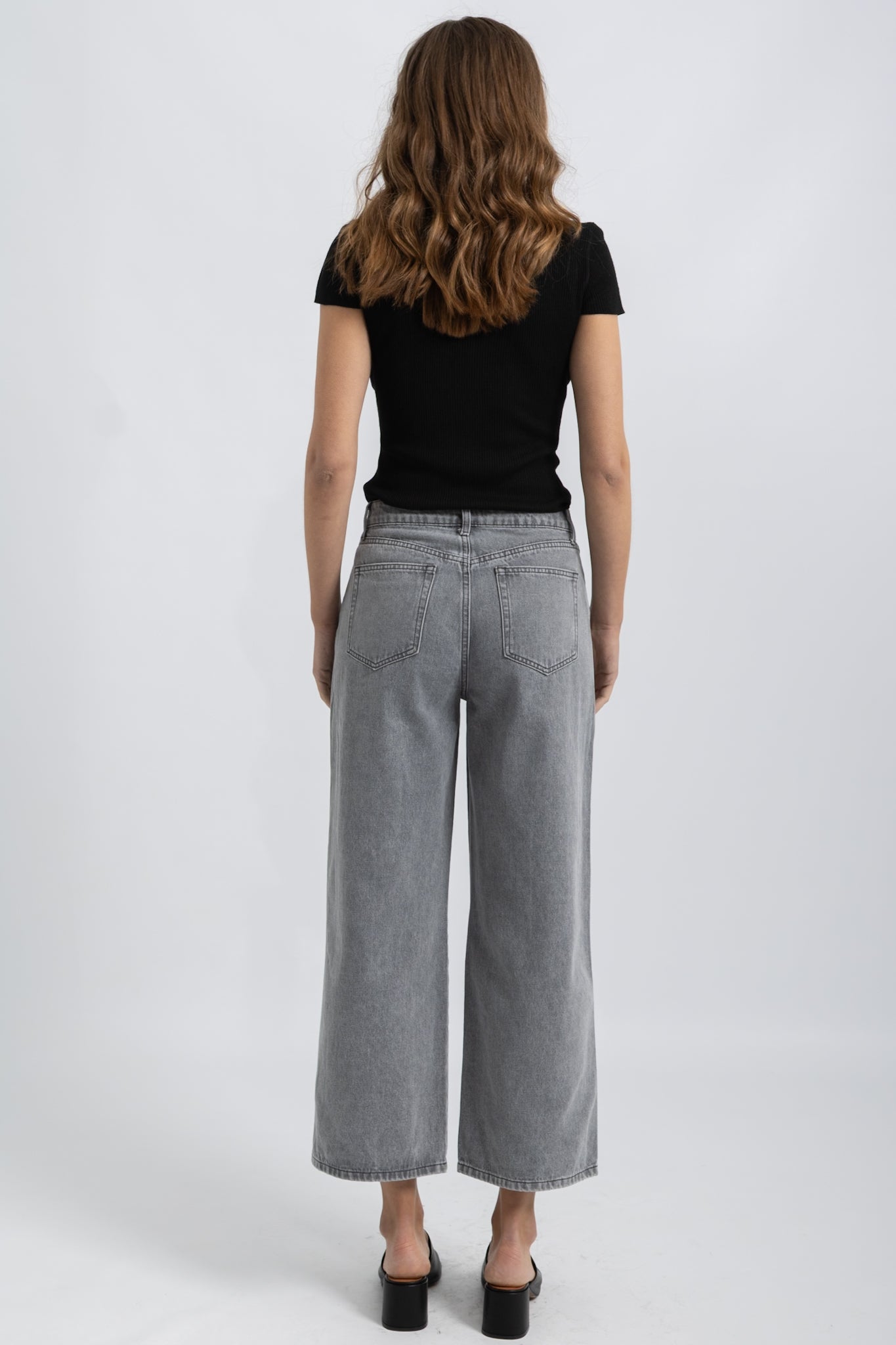 Jeans Wide Cropped Denim Gris